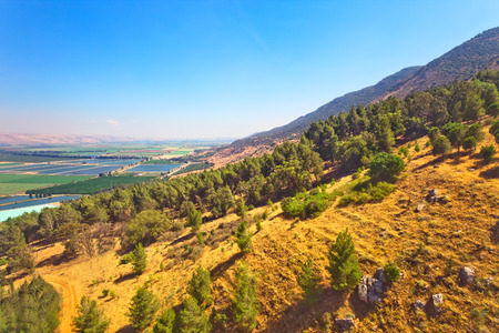 Panorama of the Upper Galilee from the tops of the hills surrounding Lake Kinneret or the Tiberias Sea or Sea of Galilee