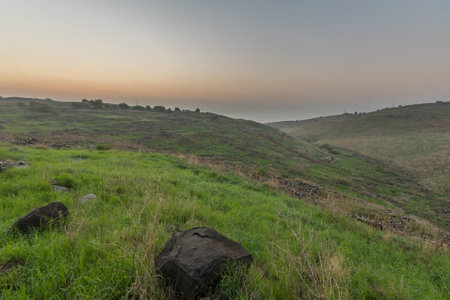 Sunrise view from the ancient village of Chorazin (Korazim) towards the Sea of Galilee. Northern Israel