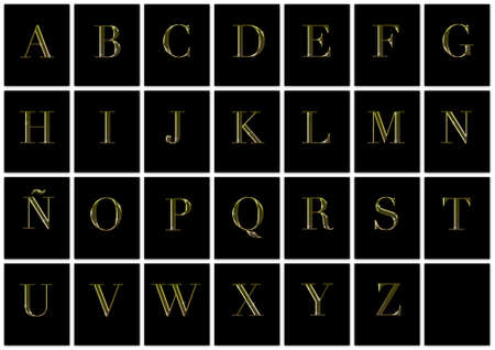 warm light hole type font script alphabet letters on matt dark nordic metallic surface for holidays decoration, stock vector illustration clip art abc