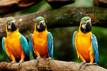 Close up of family macaw parrot or Ara ararauna is native to Mexico and South America.
