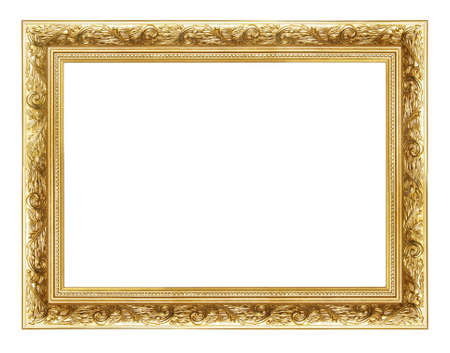 Empty golden vintage frame isolated on white background