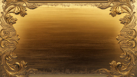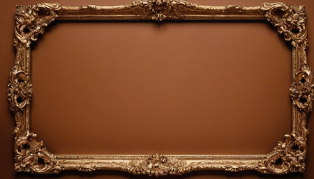 golden picture frame on a brown background with space for your text