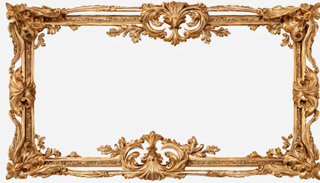Ornate gold picture frame isolated on white background