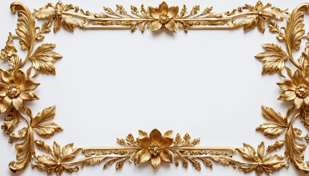 A stunning gold floral frame designed on a neutral background, ideal for adding a touch of elegance to various creative projects and artworks.