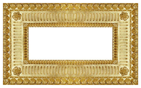 Panoramic golden frame for paintings, mirrors or photo isolated on white background.