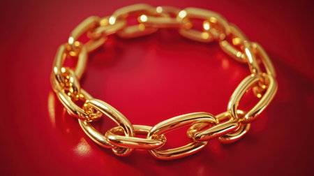 This exquisite gold chain bracelet rests gracefully on a rich red background, highlighting its luxurious design and elegant appeal as a fashionable accessory.