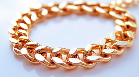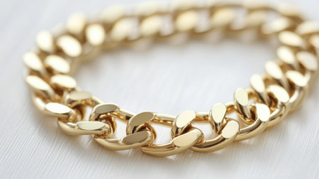 An elegant golden chain bracelet featuring polished links, beautifully reflecting light on a clean surface, ideal for showcasing luxury and style in jewelry.