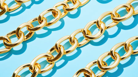 This close-up image showcases a shiny golden chain with intertwined links, set against a soft blue background, symbolizing strength and connection.