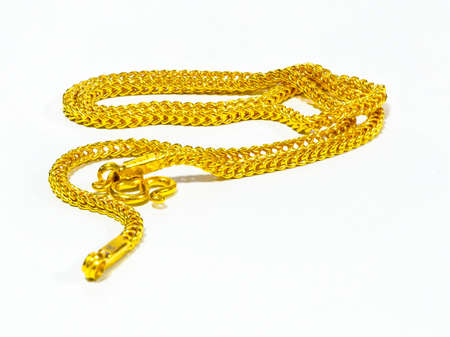 Luxury gold chain necklace macro shot isolated on soft white background