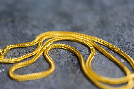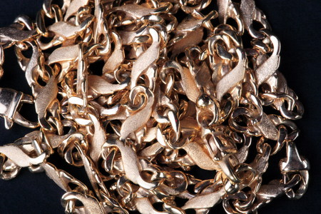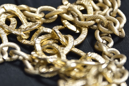A close up gold necklace. Concept of symbolizing market speculation and investment trends