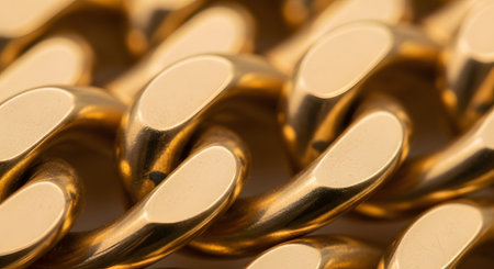 Polished gold chain links create a stunning texture with a shimmering background that highlights their elegance and craftsmanship