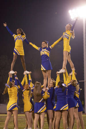 A Portrait of beautiful cheerleaders in action