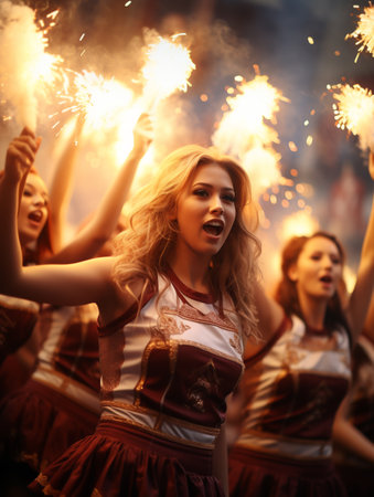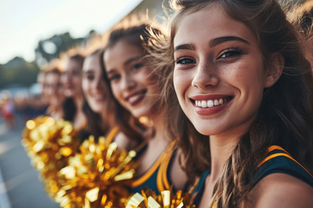 Energetic and joyful: a portrait of young women cheerleaders from an American football team, showing their vibrant spirit
