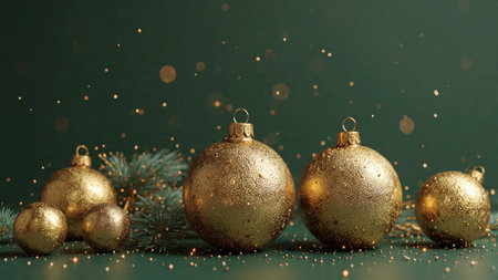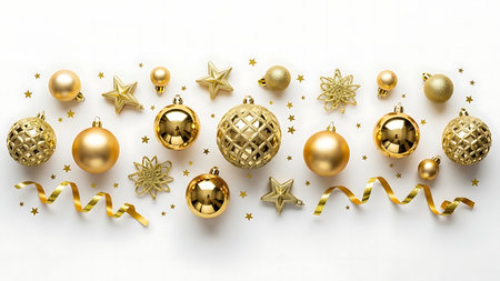 Elegant Holiday Decor with Golden Baubles and Glittering Embellishments on a Clean Backdrop