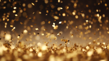 Shimmering gold confetti falls against a dark, bokeh background, creating a festive and glamorous mood. Ideal for celebration themes, party promotions, luxury branding, or stylish events. Generated A.I.