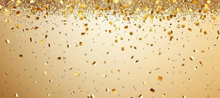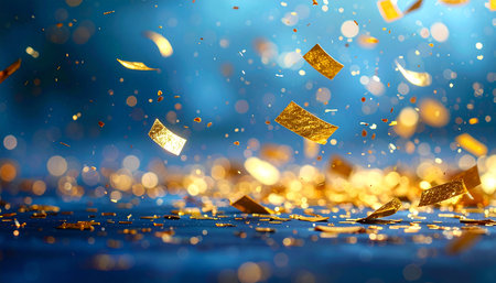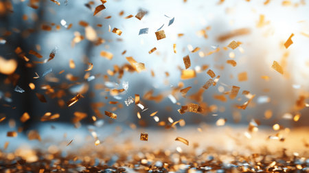A dynamic scene capturing golden confetti cascading through the air during a vibrant celebration, creating an uplifting mood perfect for various festive occasions.