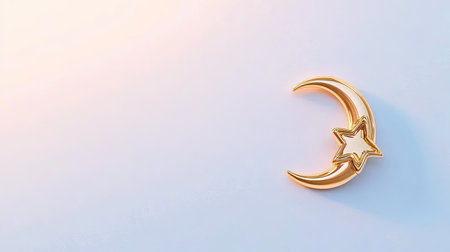 This enchanting image features a gold crescent moon and star design set against a soft pastel background, perfect for nighttime themes and creative projects.
