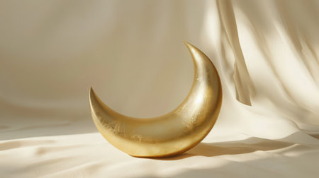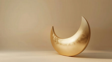 An elegant gold crescent moon shape is artistically displayed on a soft white background, presenting a modern and minimalist aesthetic ideal for decoration or design projects.
