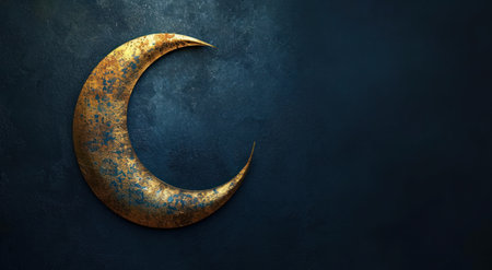 This image features a beautifully crafted golden crescent moon on a deep blue background, exuding a sense of peace and magic, perfect for various creative projects.