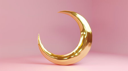 A golden crescent moon isolated on a pink background. An element suitable for Islam's religious, magical decorations