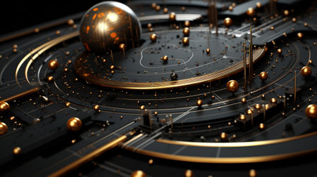 AI Generated. Abstract composition of black spheres with golden highlights, symbolizing opulence and modernity Perfect for exclusive event promotions, luxury product presentations