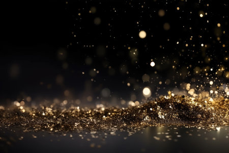 Golden sparkles cover a dark surface reflecting light and creating an enchanting display.