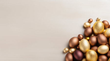 Golden Easter Eggs on Light Background, Easter Concept, Space for Text