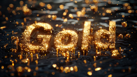 Immerse in opulence with gold in dripping gold text against a black backdrop, epitomizing luxury and elegance.