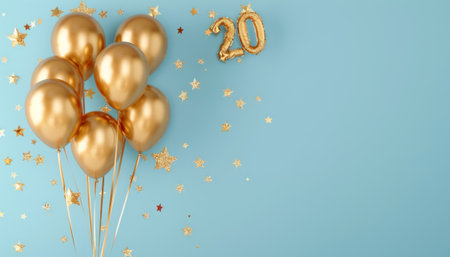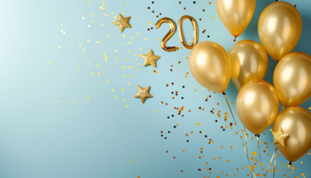 Twentieth Birthday Celebration with Golden Balloons and Colorful Confetti Decorations