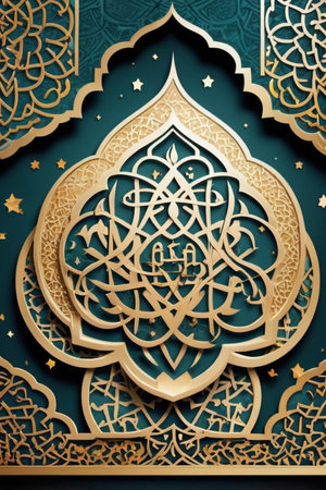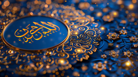 This image showcases intricate Arabic calligraphy with golden accents on a richly textured background, highlighting cultural beauty and artistic craftsmanship.