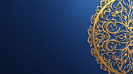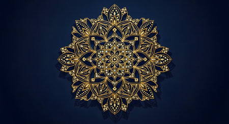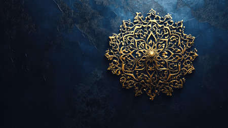 Golden flower ornament on navy blue background. Elegance and sophistication.