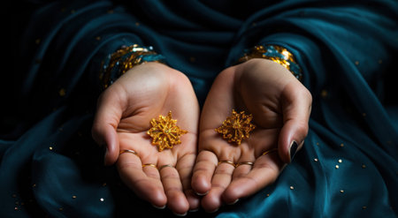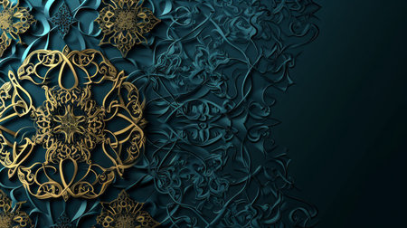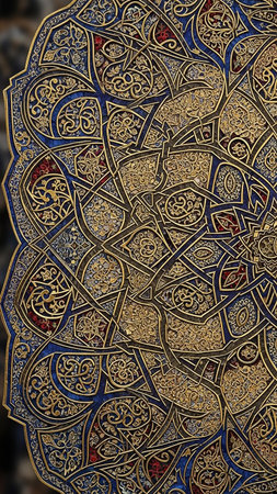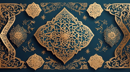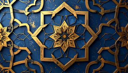 Detailed decorative pattern with gold and blue hues, highlighting intricate craftsmanship and artistic design, perfect for cultural themes and visual storytelling