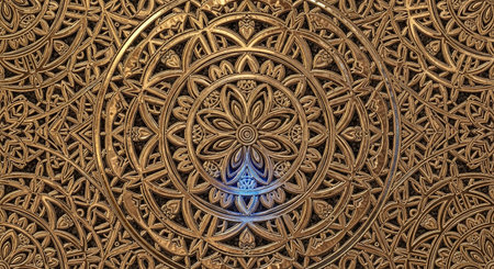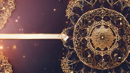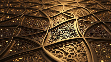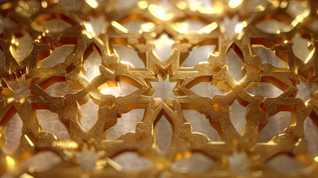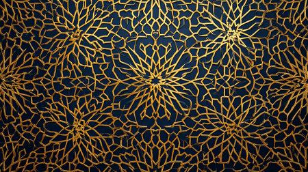 Filigree showing intricate golden geometric pattern with ornate filigree details and subtle glowing lights creating a and opulent texture background for decorative...
