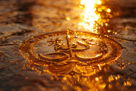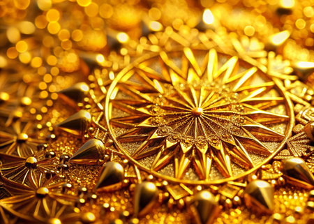 A stunning close-up of an intricate golden ornament featuring sparkling details. This luxurious decoration exudes elegance and opulence, perfect for art and design projects.