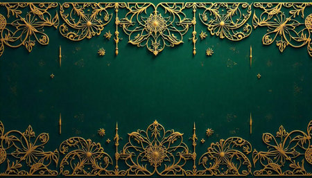 A bright green background adorned with intricate gold patterns, creating a luxurious and elegant design that stands out.
