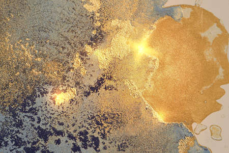 painted background. Abstract emotional art. modern design element. golden liquid acrylic paints