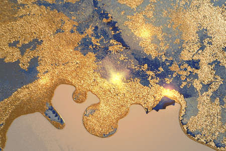 Gold and blue pattern with texture of marble and sparkles
