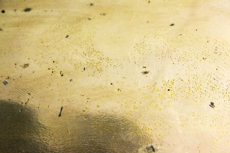 Beautiful abstract golden liquid paint background, beauty gold backdrop texture. Metallic gold paint, art design. Yellow shimmering surface close-up. Golden bright glitter texture