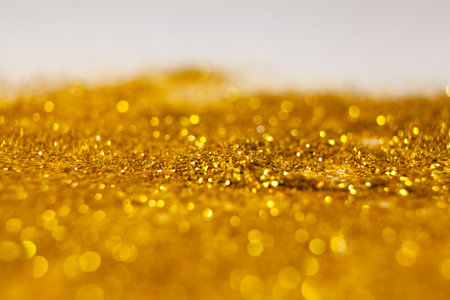Shiny gold glitter on grey background