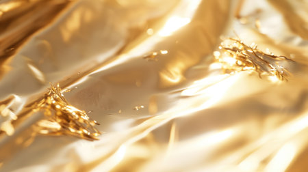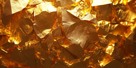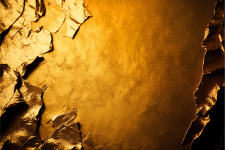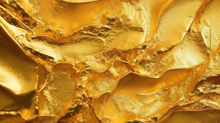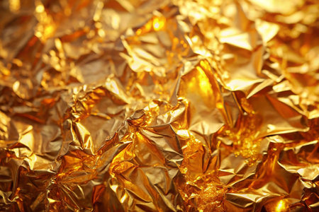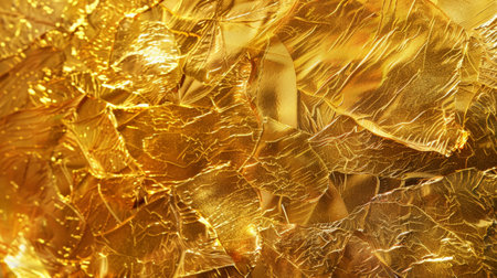 Captivating gold crumpled foil texture background for glamorous designs and presentations