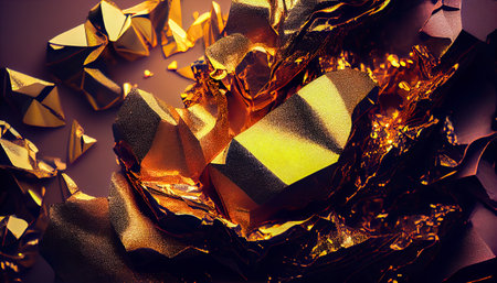 Golden Background With Abstract Geometric Design, Sharp Edges, Light Reflections, Gold Leaf Texture