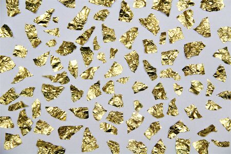 golden confetti on a gray background. close-up.