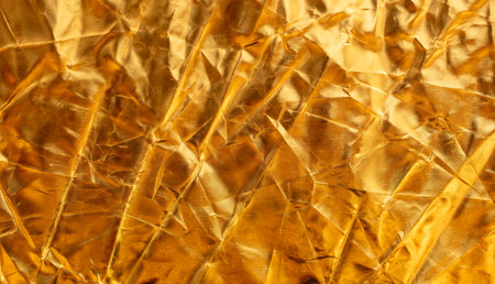 Glamorous and captivating gold crumpled foil texture backdrop for stunning visual compositions.