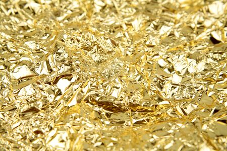 Golden crumpled foil texture, bright background