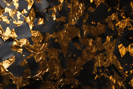 Black and gold paper confetti. Abstract background. Top view.