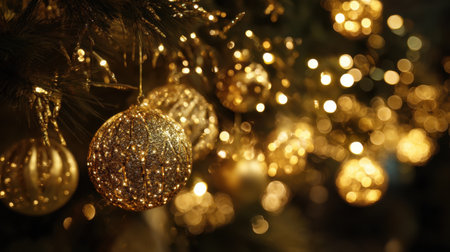 Delicate golden and silver decorations shimmer brightly, enhancing the holiday spirit during the Christmas and New Year celebrations.