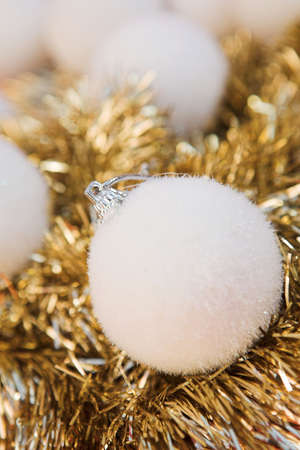 christmas background with golden balls, shallow depth of field. macro