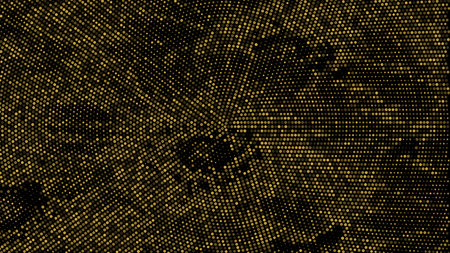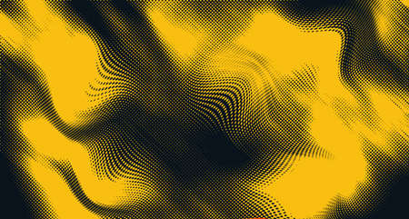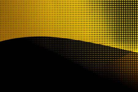 Abstract yellow-black background with dots, halftone. Concept with wave pattern, possible empty black space for your content. Background.