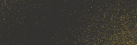 Gold glittering dust with stars on a gray transparent background. Dust with gold glitter effect and empty space for your text. Vector illustration
