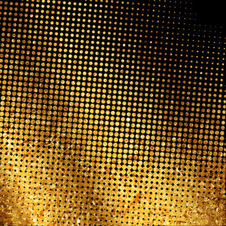 Gold sequins texture. Abstract halftone background. Vector golden pattern of round elements.